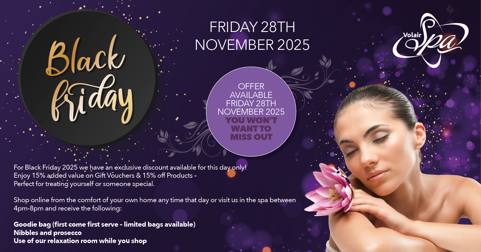 Shop online from the comfort of your own home anytime that day or visit us in the spa between 4pm – 8pm.